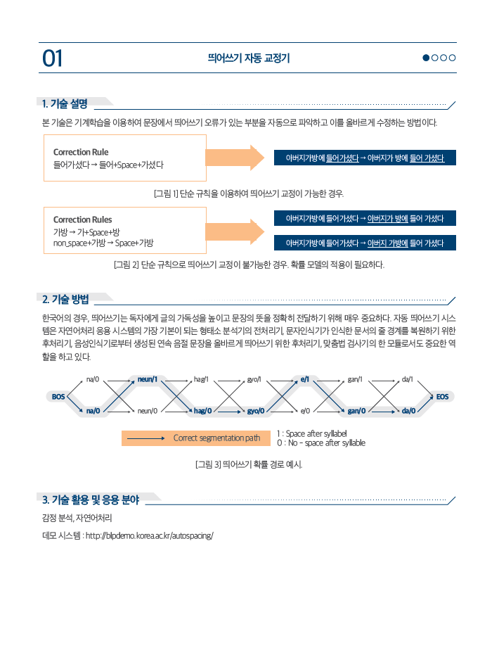 In Korean, spaces are very important to improve the readability of the sentence and to convey the meaning of the sentence accurately. Automatic word-separation system